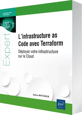 Toutes ces notions, depuis la structure du langage HCL, en passant par l’écriture de modules, de providers, leur configuration, et l’outillage que les entreprises utilisent pour compléter leur workflow de développement Terraform, sont explorées en détails dans mon livre “L’infrastructure as Code avec Terraform”, déjà disponible aux Editions ENI pour les particuliers.