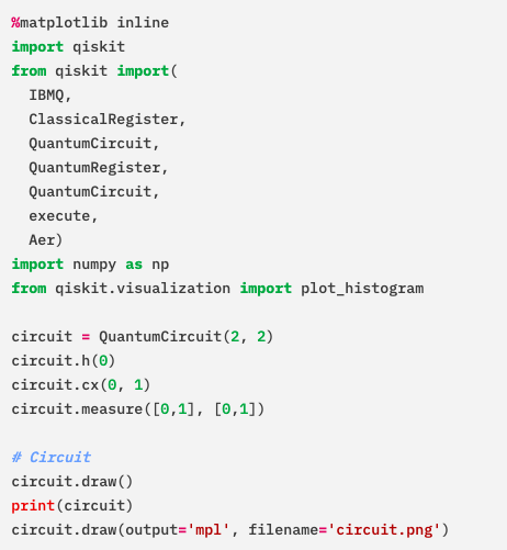 Puis on déclare les différents modules dont on aura besoin à commencer par Qiskit. On importe également numpy et plot_histogram pour avoir un résultat graphique.