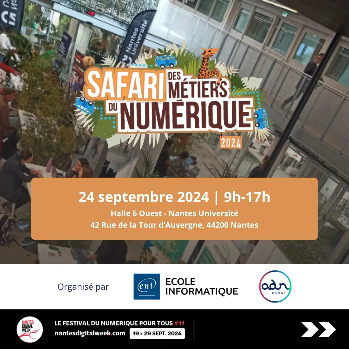 Depuis 2018, le Safari des métiers du numérique, organisé cette année par ENI Ecole Informatique et ADN Ouest, permet de mieux appréhender ce secteur en réunissant tous les acteurs de la filière numérique nantaise. Découvertes des métiers, des formations, des opportunités, cette journée est un tremplin vers une carrière dans le numérique !