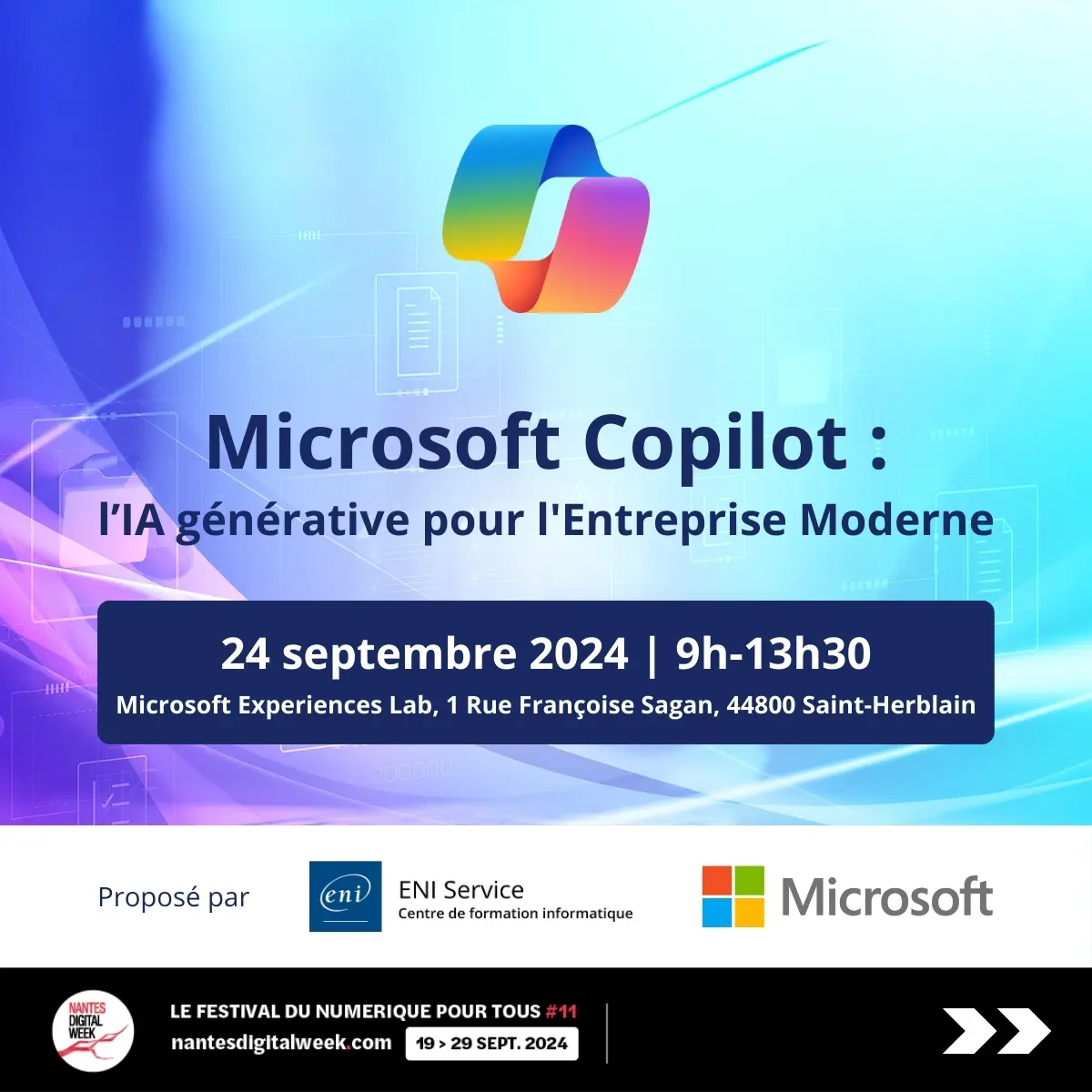 Organisé par ENI Service et Microsoft, cet événement propose à la fois des conférences, des démonstrations et des échanges autour de l’IA générative Copilot. Associé aux différents outils de Microsoft déjà bien implantés dans le monde professionnel, Copilot peut en effet être d’une efficacité redoutable à de multiples niveaux comme vous pourrez le constater.