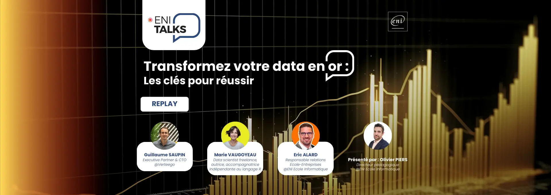 Pour aborder ce vaste sujet, cet ENI Talks, animé par Olivier Piers, directeur pédagogique de ENI école informatique, réunissait trois intervenants aux profils variés (monde du sport, de l’industrie, de la science) pour partager leurs expériences et conseils :