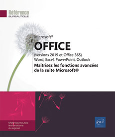 Ce livre vous présente les fonctionnalités avancées des applications de la suite bureautique Microsoft® Office. Il a été rédigé avec la version 2019 d’Office et intègre les nouveautés et différences de la version disponible avec un abonnement Office 365.