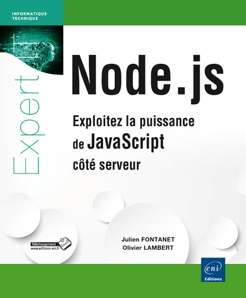 Avant-propos – Présentation – Installation – Gestionnaire de paquets npm – Concepts – Flux – Manipulation de fichiers – Promesses – Application en ligne de commande – Application web – Bases de données – Tests – Outils de développement – Débogage – Mise en production