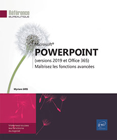 Ce livre a été conçu pour vous présenter de façon claire et détaillée les fonctions avancées de PowerPoint : il est destiné à toute personne connaissant les bases de PowerPoint et souhaitant aller plus loin par l'apprentissage des fonctions avancées de ce logiciel de Présentations Assistées par Ordinateur (PréAO). Il a été rédigé avec la version 2019 de PowerPoint et intègre les spécificités de la version PowerPoint disponible avec un abonnement Office 365.
